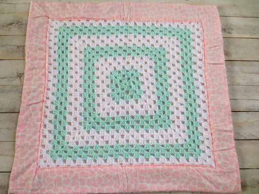 Crochet INFANT Girls Toddler Baby Blanket, Granny Square, Fabric Lined, Giraffe Print, Ready to Ship